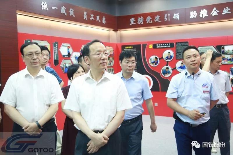 Secretary Li first visited the product exhibition hall, cultural exhibition hall, and party building activity showroom of the First Floor of Guoyang State Railway. The chairman of the company, Zeng Jianyong, reported on the company’s work in “product innovation”, “cultural construction”, and “party work”. According to the situation, Secretary Li expressed his approval and concern about the company's R&D investment, the size of scientific research personnel, production efficiency, market development, and the implementation of government tax incentives. He praised Liyang Guotie as an outstanding enterprise with innovation and vigor.