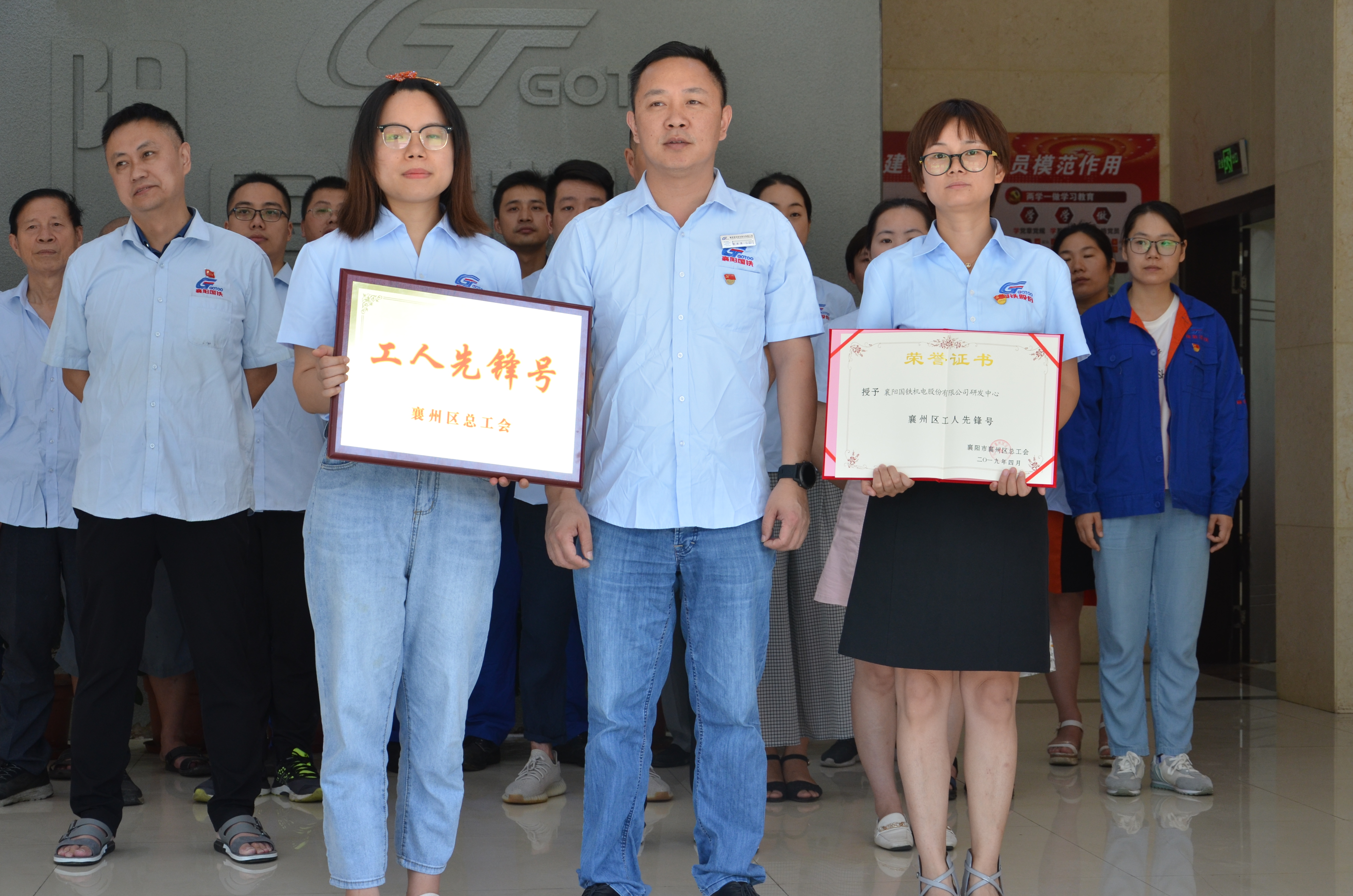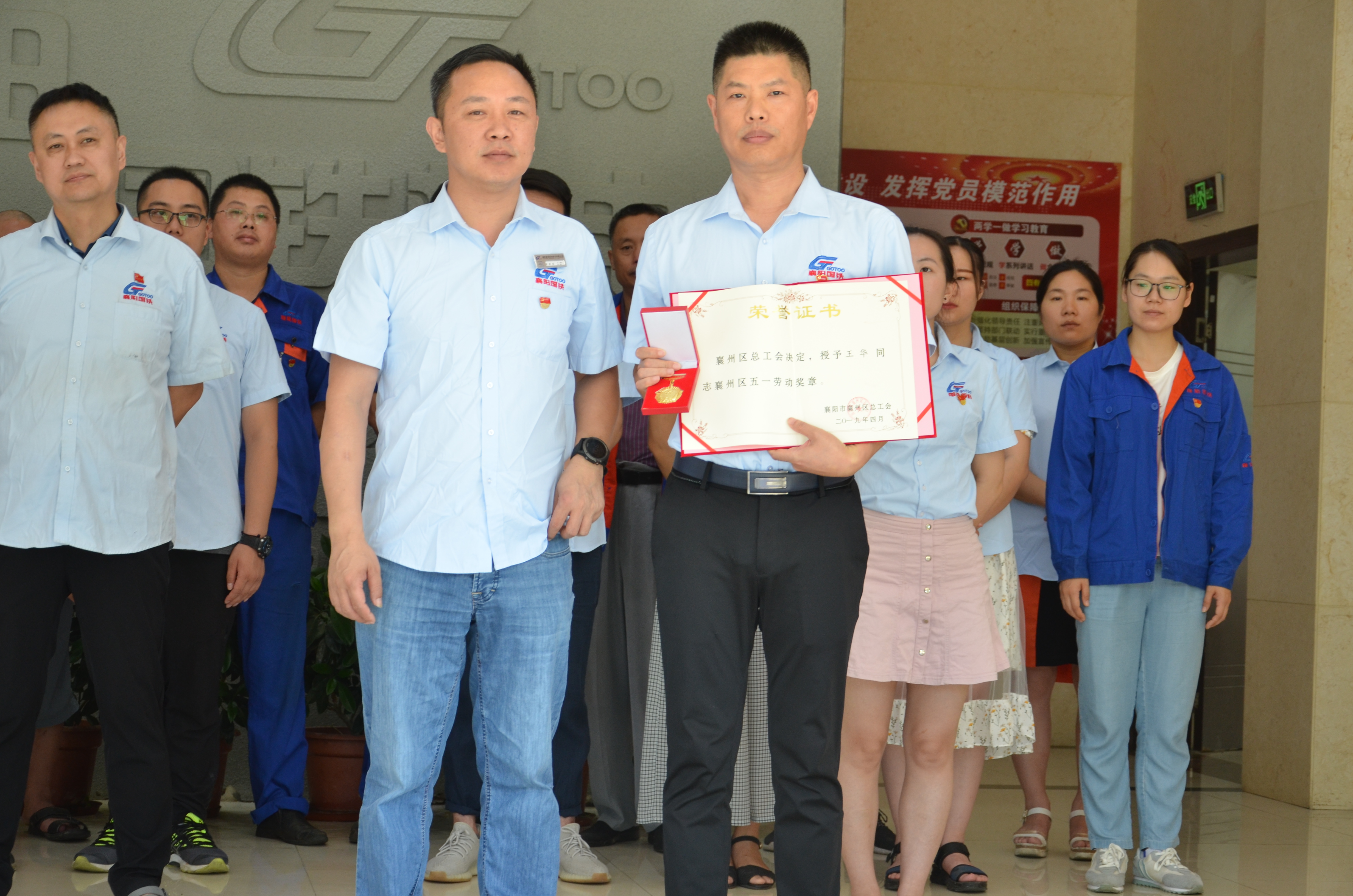 襄州區(qū)總工會決定,授予“王華同志襄州區(qū)五一勞動獎?wù)隆?;授予“襄陽國鐵機電股份有限公司研發(fā)中心襄陽工人先鋒號”獎?wù)?。由黨支部書記代表代表襄州區(qū)總工會授予獲獎部門獎?wù)?、證書、獎牌。