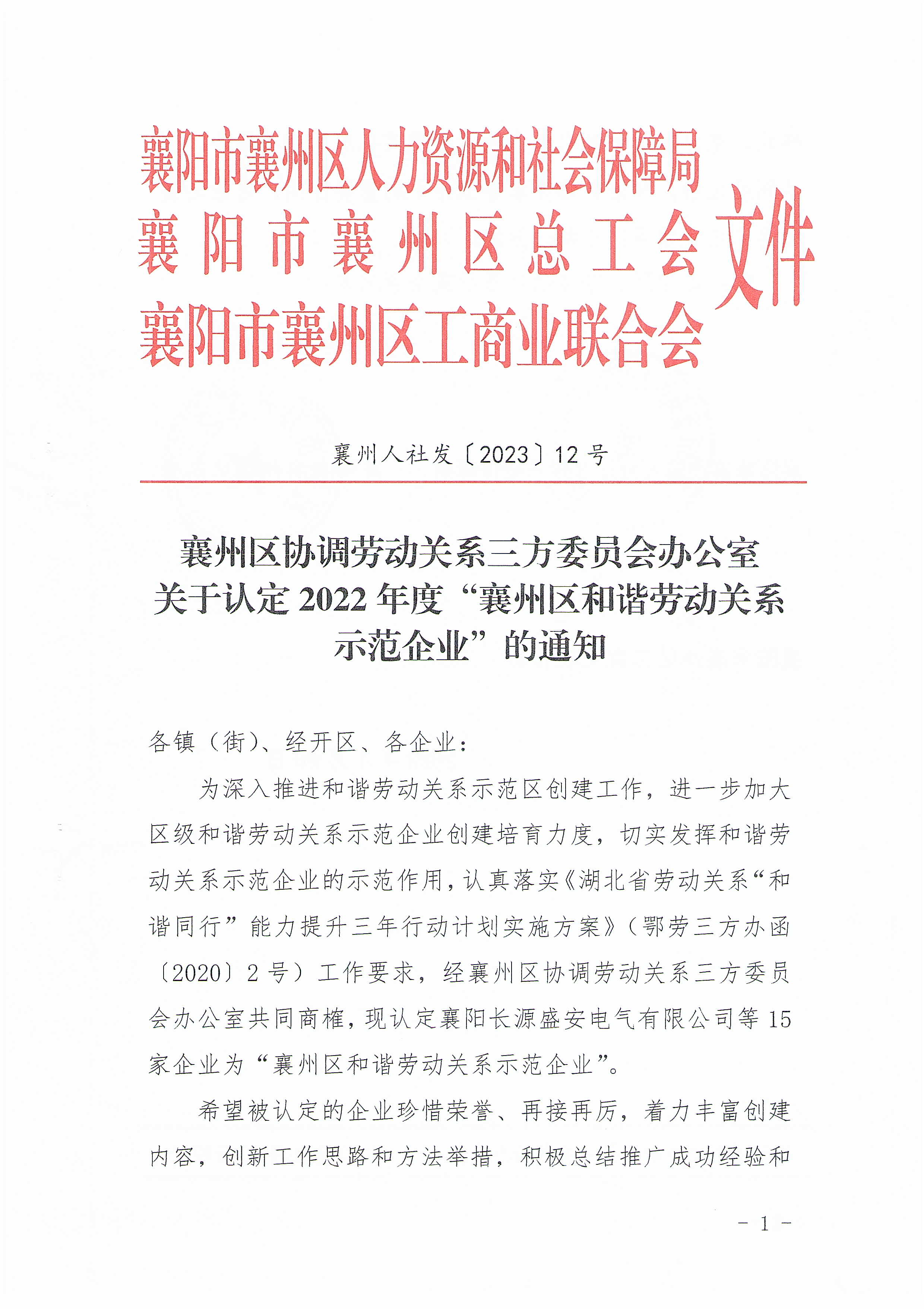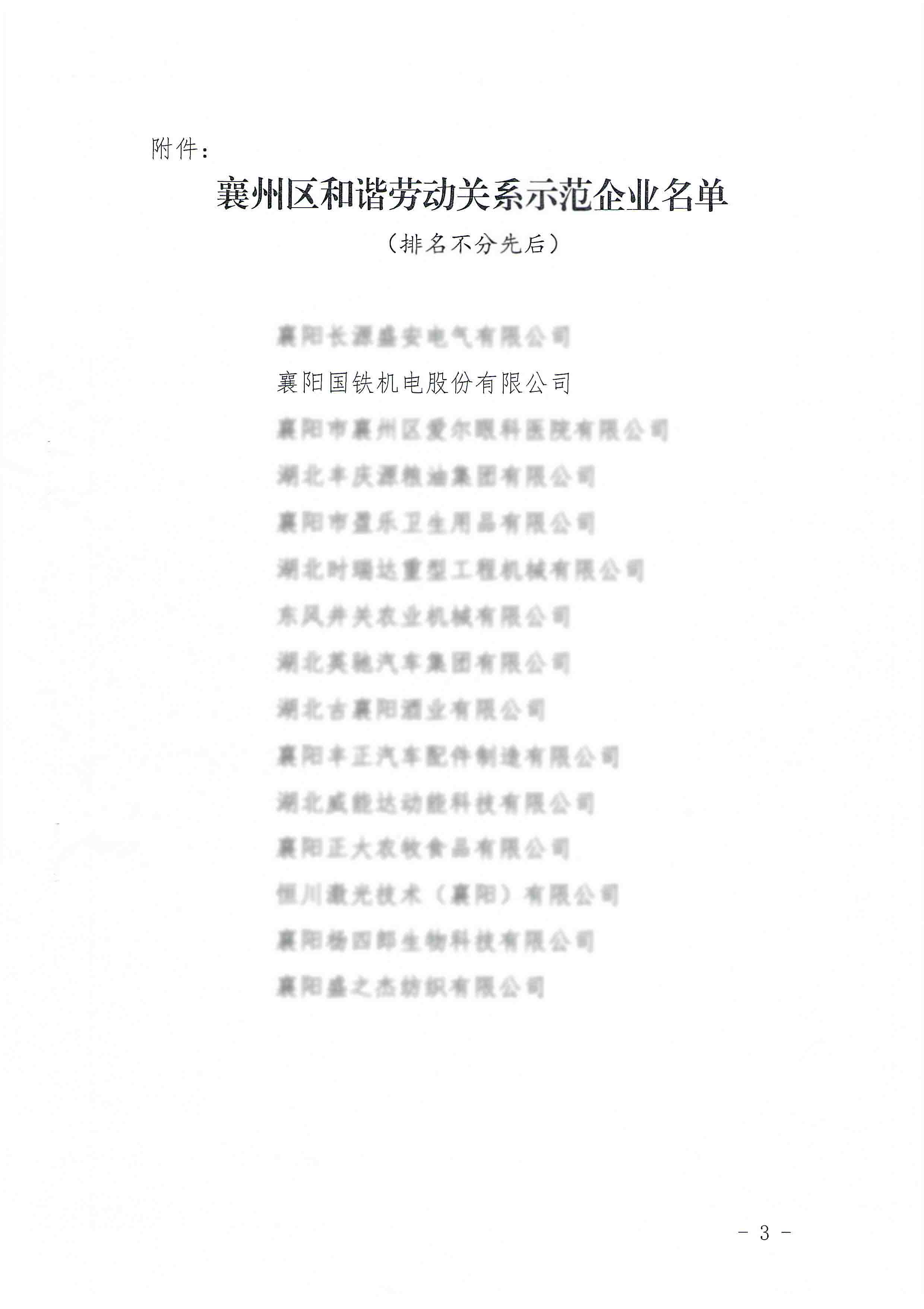 國鐵機電獲“襄州區(qū)和諧勞動關系示范企業(yè)”榮譽